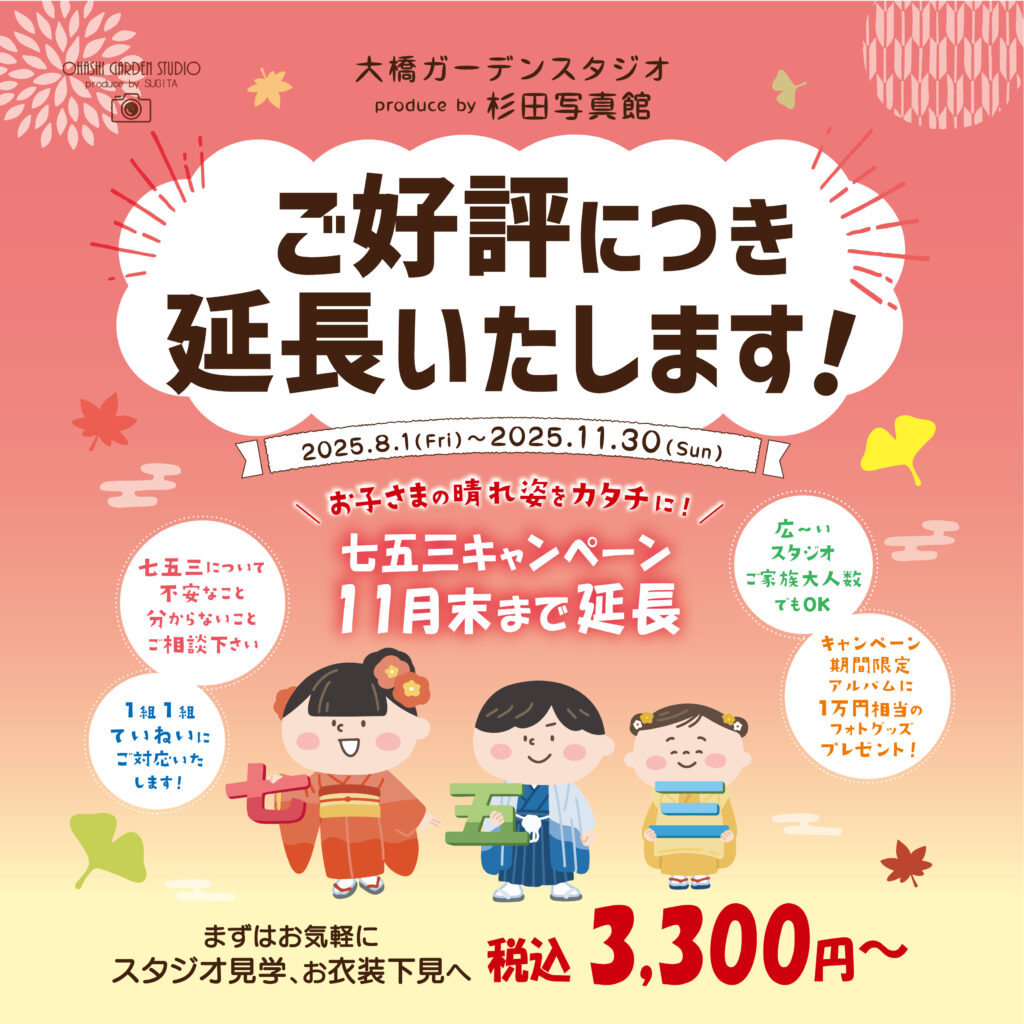 大橋ガーデンスタジオ produce by 杉田写真館 の Kids 七五三 キャンペーン延長